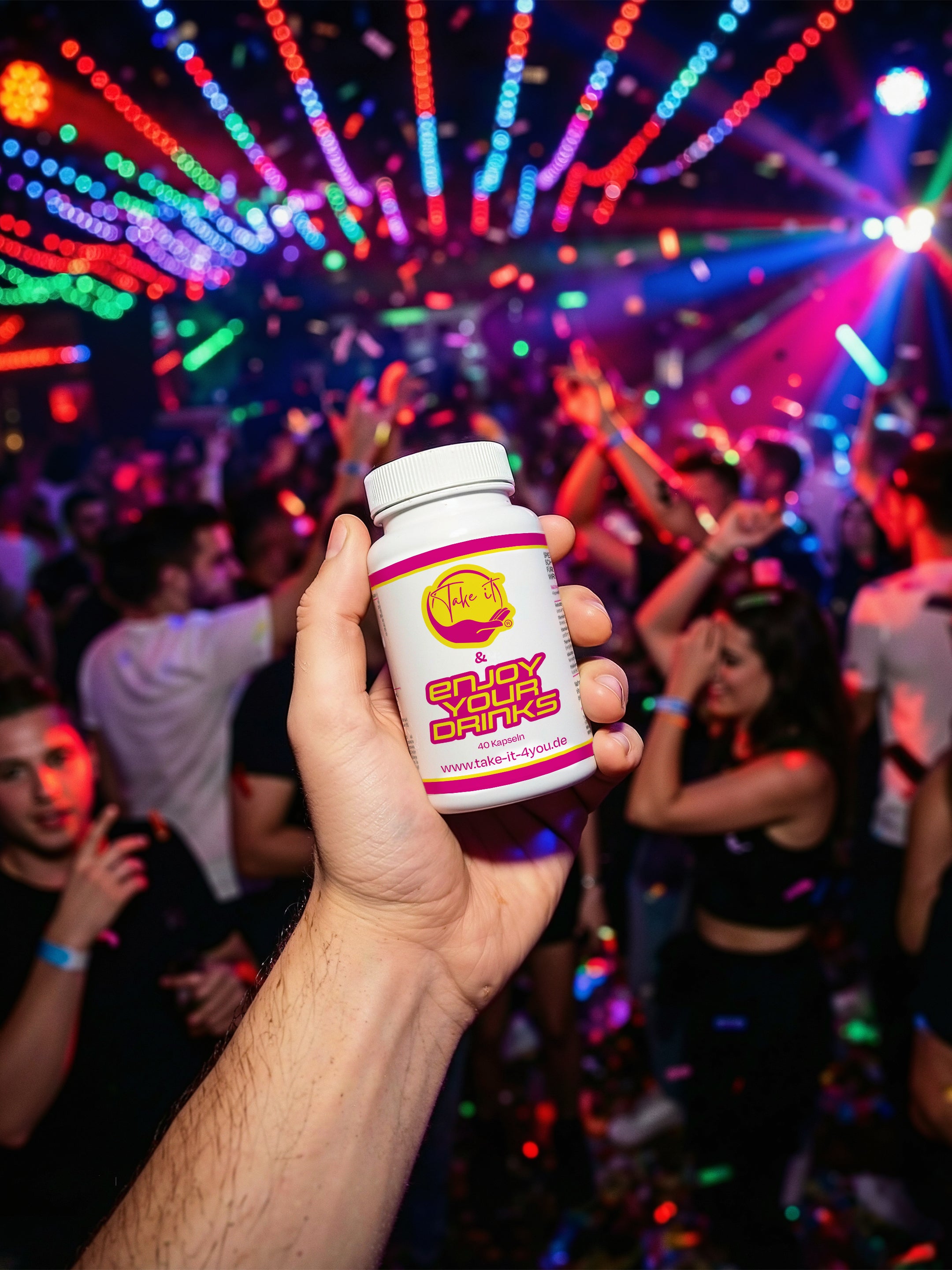 Unser Produkt wurde entwickelt, um deinen Körper vor dem Ausgehen optimal zu unterstützen. Die sorgfältig abgestimmte Kombination aus Vitaminen und Mineralstoffen begleitet dich im Rahmen einer abwechslungsreichen, ausgewogenen Ernährung und gesunden Lebensweise: